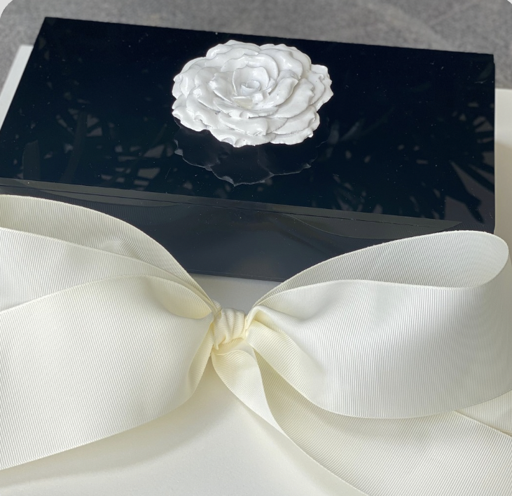 Caja Acrílico Negra con Rosa cerámica