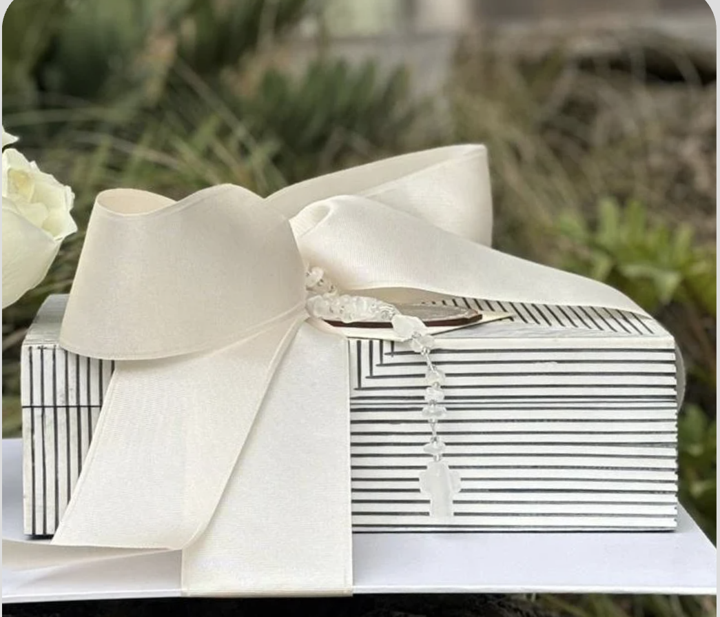 Caja de hueso con Rosario y Medallón cantidad