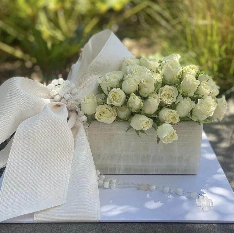 Caja de ónix Alhajero con mini rosas y rosario cantidad
