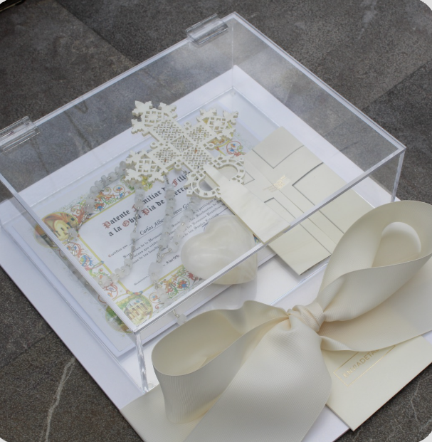 Caja de Recuerdos con misa, rosario y corazón cantidad