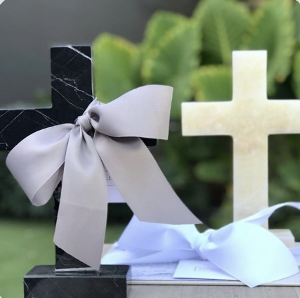Cruz de Acrílico Nacarada y Misa en base